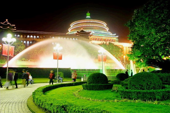 重慶人民大禮堂位于人民路學(xué)田灣,是重慶市最大的劇場。1950年動工興建,1953年竣工。初名“中蘇大樓”,后改名為“西南行政委員會大禮堂”, 版權(quán)所有聊城聊之旅國際旅行社有限公司,轉(zhuǎn)載必究!1955年改為現(xiàn)名。大禮堂占地6.6萬平方米,建筑面積2.5萬平方米,分禮堂、南樓和北樓三部分。其中禮堂占地1.85萬平方米,禮堂高65米。大廳高55米,內(nèi)徑46.33米。正廳內(nèi)設(shè)大型舞臺一座,四周環(huán)繞五層挑樓,四樓一底共4200個座位。大禮堂取中西合璧之建筑風(fēng)格,主體部分仿北京天壇祈年殿及天安門形式,配以廊柱式的南樓、北樓。一色綠色琉璃瓦頂,大紅廊柱,淤塞欄桿。大門為一大牌坊。整個建筑布局合諧,雄偉壯觀,雕梁畫棟,金碧輝煌。曾先后接待過蘇聯(lián)、日本、朝鮮、印度、羅馬尼亞、南斯拉夫等國的大型文藝表演團(tuán)體,是重慶市中外文化交流的重要場所。