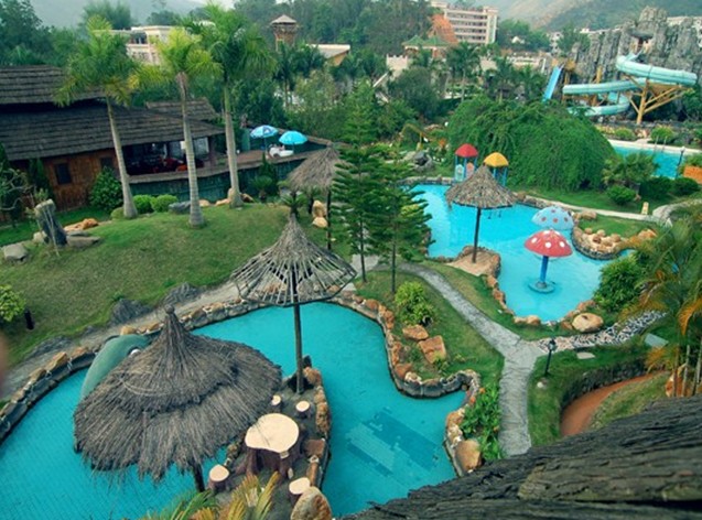 現在,這里已建成集溫泉理療、旅業飲食、娛樂健身、旅游購物于一體的綜合性旅游度假村。村內興建有可以在室內泡溫泉的溫泉賓館和度假別墅,溫泉浴分為自然溫泉區和貴賓浸身雅室。自然溫泉區又分為童稚區、情侶區、瀑布區。度假村內還建有大小會議中心、學生旅館,辟有籃球、網球、羽毛球、乒乓球、燒烤等健身及娛樂場所。形態各異的泳池噴泉、亭臺水榭、奇水異花、園林山水,構成了一座全方位、多功能、亦動亦靜、如詩如畫的大型度假村。