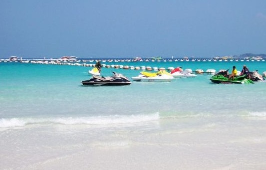 金沙島的公眾浴灘是一個半月形,長約二公里的淺灘,海水淺藍淺藍、晶瑩剔透,海岸遍布原始幼白的細沙,煞是令人心動,岸邊清一色的工藝店和餐廳,向游客們兜售著絲織品、泳裝、休閑褲、民族服飾、皮包、皮革、手工藝品,其間還有為人扎辮子的婦女,扎成由無數條小辮子組成的發型,好像電影里黑人婦女的頭發差不多,版權所有山東聊城聊之旅國際旅行社有限公司,轉載必究!收費是100到200銖。