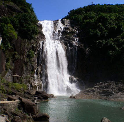 龍歸飛瀑位于豐順縣東聯鎮中部偏南,距縣城13公里,來源于豐順第二高、海拔1285米的釋迦山脈,被譽為“廣東省黃果樹瀑布”、“粵東第一瀑”。 那天,晴空萬里,天藍得清秀。我們車子在山間盤旋而上,沿途景色秀美,可瀏覽沿岸美麗的田園風光,峽谷里一泓青綠的泉水正源源不斷地流淌著,水聲噥噥,山上樹木豐茂陰翳,欣欣向榮,綠滿春山,這是我第一次看到的綠水繞青山。