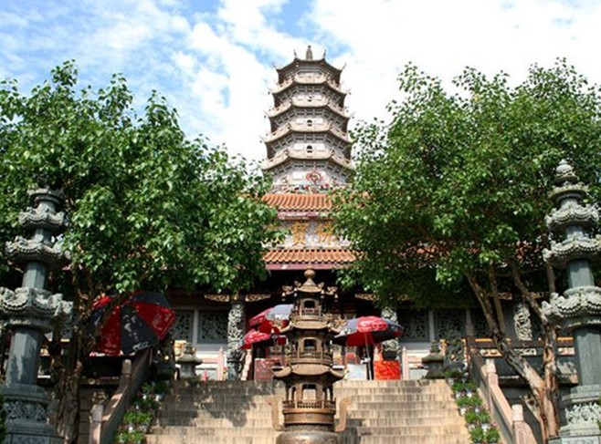 據(jù)清光緒《嘉應(yīng)州志》載,由南漢王劉鋹始建于大寶八年(公元965年),距今已有一千多年歷史。鐵塔分為七層,身高4.2米,呈四方形,塔底邊長(zhǎng)1.6米,為生鐵鑄成,每面鑄有大小佛像250個(gè),四面合計(jì)為一千佛,故名千佛塔。原塔建于修慧寺,因寺毀,清乾隆初年嘉應(yīng)州官王者輔將鐵塔移于梅城東巖山頂,上面蓋亭宇,周?chē)跅U,并砌石階,以供游覽者登臨觀賞。梅州千佛塔與廣州光孝寺的東西鐵塔是同一歷史年代的遺物。梅州千佛塔按每一面計(jì)算,第二層有77尊佛、第三層67尊佛、第四層57尊佛、第五層37尊佛、第六層12尊佛,合為250尊佛,版權(quán)所有山東聊城聊之旅國(guó)際旅行社有限公司,轉(zhuǎn)載必究!四面共計(jì)滿(mǎn)千佛。第四層的佛像中,四面各有一尊大佛坐在蓮花池座上,它們是東方善德佛、南方施壇德佛、西方無(wú)量壽佛、北方相德佛。第七層是合尖頂,塔旁建有黃遵憲的《南漢修慧寺千佛塔歌》、丘逢甲的《南漢敬州修慧寺千佛塔歌》等碑刻,是廣東省重點(diǎn)文物保護(hù)單位。
