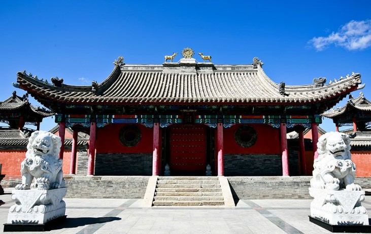 貝子廟是內蒙古四大廟宇之一。位于錫林郭勒盟錫林浩特市北部的“額爾敦陶力蓋”敖包南坡下,蒙古語名“班智達葛根廟”,漢名“崇善寺”。貝子廟是藏傳佛教圣地。它的規模,歷來被稱為錫林郭勒盟地區第一大寺,是錫林郭勒盟佛教文化的一大寶庫,享有“北國名剎”聲譽。貝子廟周邊水草肥美,風光秀麗。圣潔的錫林河水在貝子廟西邊,由南向北緩緩流去,如今它的兩側是繁華市區。貝子廟的遠處是以錫林河畔為主的肥沃草地及連綿的群山。相傳,當年選擇的廟址為一塊吉祥寶地。