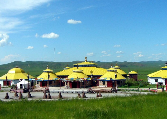 金帳汗旅游部落始建于1994年,是以部落樣式為主體,聚集了以蒙古民族為主的北方少數民族傳統文化、民俗民風、宗教藝術、餐飲等綜合旅游服務景區。現有固定資產200余萬元,占地面積100萬平方米。服務區以蒙古民族特色古樸典雅獨特風格的282平方米的磚木結構的蒙古包為主,周圍環繞坐落成吉思汗金帳、鄂倫春撮羅子、七星帳蒙古包群和達斡爾山莊,還有400多平方米的民族文化多功能涼廳和600平方米多功能觀賞博克擂臺、民族歌舞篝火晚會場等。可同時接待1000余人就餐,100余人住宿;可舉辦大型民族體育賽會和大、中、小型歌舞表演、篝火狂歡晚會等娛樂活動。設有馬隊迎賓、套馬表演、馴馬表演、馬群瞬間攝影、祭敖包、蒙古族博克表演、鄂倫春、鄂溫克、達斡爾三少民族民情演示、訪牧戶體驗生活、騎馬、騎駱駝攝影、騎馬觀光、乘勒勒車、米日桿車觀光、篝火狂歡晚會、民族歌舞表演、射箭、打彈弓、飛鏢等活動項目,已達到了游、行、住、食、娛、購六大要素為一體的大型民族民情、民族文化的草原景點。