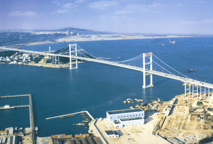位于汕頭港東部出入口媽嶼島海域處,為跨海公路橋。橋面跨越礐石海, 全長(zhǎng)2500米。由3部分組成:南面是跨黃沙灣南航道的預(yù)應(yīng)力鋼筋混凝土加大橋勁梁懸索橋;北面是跨北航道的預(yù)應(yīng)力鋼筋混凝土梁式橋;中部為橫跨媽嶼島上的預(yù)應(yīng)力高架旱橋。橋主孔通航凈跨度452米,通航凈高46米,可以通過5萬噸級(jí)船舶。這座大橋是深汕兩地一級(jí)汽車專用公路的配套設(shè)施,是連結(jié)深圳、珠海、汕頭、廈門等4個(gè)經(jīng)濟(jì)特區(qū)的陸地交通紐帶。