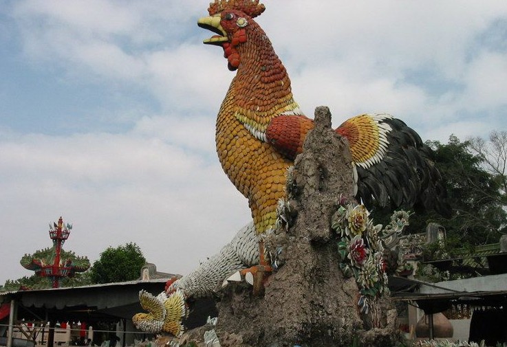 島上最高處立有觀世音菩薩巨型石雕像,高12米,由大小105塊石雕砌成,從海灣大橋上過往時皆可望見。