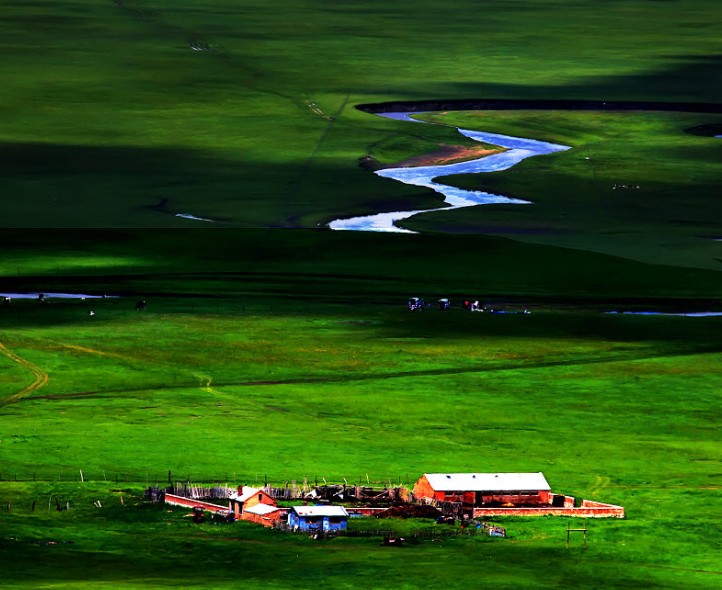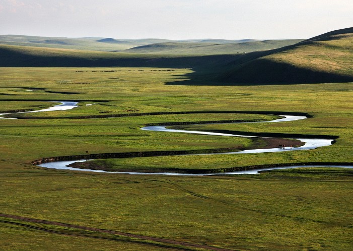 在呼倫貝爾的陳巴爾虎草原深處有一條“天下第一曲水”之稱(chēng)的莫爾格勒河,金帳汗蒙古部落也位于這里,此地是以游牧部落為景觀的旅游景點(diǎn)。這里是呼倫貝爾有名的天然牧場(chǎng),每到水草豐美的季節(jié),這里就會(huì)聚集很多游牧的牧民,形成一個(gè)自然的游牧部落。茫茫大草原上茵茵的牧草,彎彎曲曲的河水,成群的牛羊,點(diǎn)點(diǎn)的蒙古包……構(gòu)成了一幅完美的草原風(fēng)情畫(huà)。