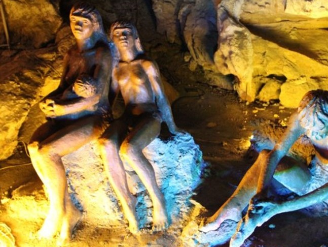 獅子巖以出土“馬壩人”頭蓋骨和“石峽文化”遺址而蜚聲中外。馬壩人是介于中國猿人和現(xiàn)代人之間的一種古人類,考古學(xué)家和藝術(shù)家在銀巖內(nèi)塑造了12萬年前馬壩人的生活群像,在桂花巖內(nèi)再現(xiàn)了四五千年前馬壩新人生活群像,洞外有多種游樂設(shè)施,有仿古式的“野烤洞”和“狩獵沖”,可乘仍古獨木舟游洞中湖。
