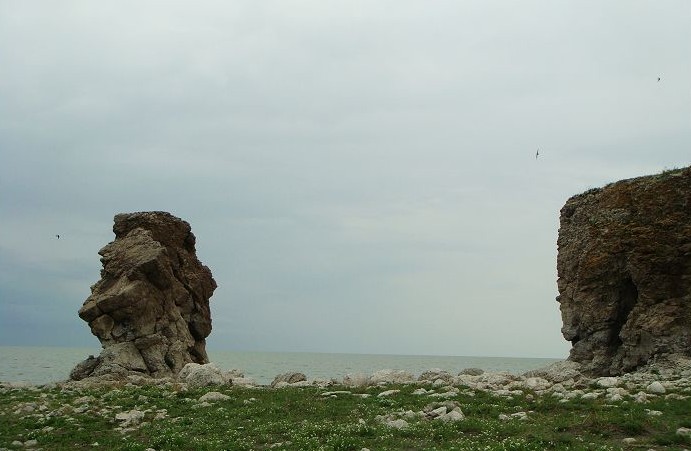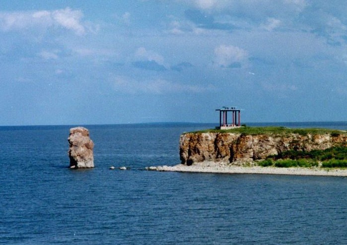 成吉思汗拴馬樁 - 風(fēng)景成吉思汗拴馬樁位于呼倫湖西岸, 距新巴爾虎右旗所在地阿拉坦額莫勒鎮(zhèn)38公里,離滿(mǎn)洲里市88公里,是一處三面環(huán)水的峭壁。南臨一湖碧水,放眼望去,石壁嶙峋峭拔,光滑如刀削;北、東面呈陡坡,下臨湖灣,只有西部為緩坡與湖岸相連,山頂上有一座高大的涼亭。