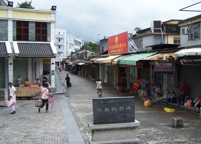 中英街,位于深圳市鹽田區沙頭角鎮的中英街,由梧桐山流向大鵬灣的小河河床淤積成,原名“鷺鶿徑”。長不足0.5公里,寬不夠7米,街心以“界碑石”為界,街邊商店林立,有來自五大洲的產品,品種十分齊全。因到特區的人要到深圳市公安局辦理一張“前往邊防禁區特許通行證”,才能進入“中英街”,故“中英街”被稱作特區中的“特區”。
