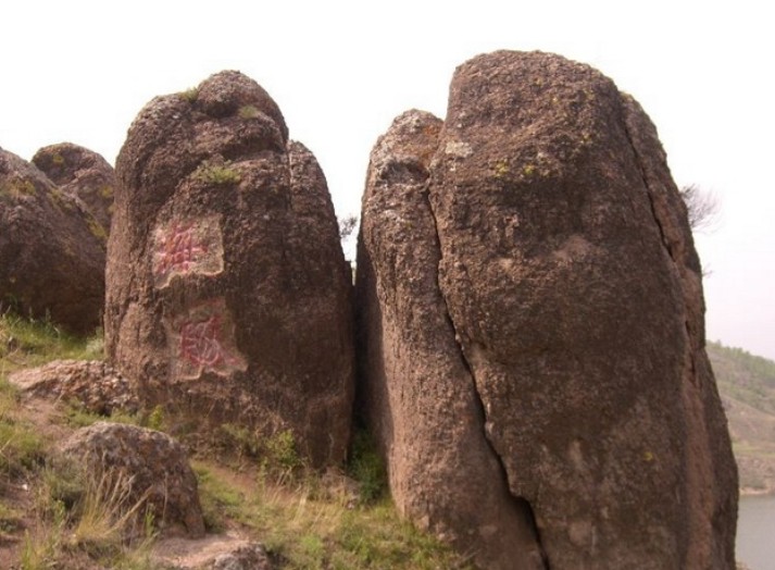 "天下第一神龜",逼真、形象、奇大,中外游人稱之為"絕世珍品"。"外星人","寶黛石",高幾十米,粗十幾米,高高聳立在永興湖的西山上,稱"世上無雙",怎樣形成,無人破解。"飛來石",怎樣飛來,怎樣一劈為四,留下串串懸念。"平安洞"的神奇,"海豚癡情"的浪漫,"臥佛"的神秘,"草原風光"的嫵媚,給你留下無限的遐想和回味。永興湖輻射四面,東面有"大廟古遺址",距今有一萬年的歷史,西面有忙牛山"山高入云",原始森林,南面有古城"剎虎口"內蒙古山西的交界處古長城,北面有"哈達山"狀似狹谷,站在山上頭暈目眩,深不見底,有南方氣勢。外星人很早以前,不明飛行物降到永興湖的西山上,人們不敢近前,后一道人經此處,明其祥是外星人化石。該石約有30米高,十幾米粗,矗立在山頂上。外星人的形象逼真,耳朵、眼睛、鼻子清晰可見,特別是他的嘴巴,仿佛要把世界吞下去,夜闌人靜,仿佛聽到他的唱歌聲,以后人們來這里燒香保佑平安、幸福。 寶黛石:位于永興湖西面的高山上,距湖約有3公里。版權所有山東聊城聊之旅國際旅行社有限公司,轉載必究!寶黛石高30米,粗十幾米,氣勢如磐,雄偉、挺拔。游人到此贊嘆不已,仿佛身臨其境。一人前往,望而卻步。因兩塊巨石形狀似人,而賈寶玉又是石頭所為,故稱寶黛石。有人說到永興湖,不到寶黛石,猶如到中國不到長城,終生遺憾。