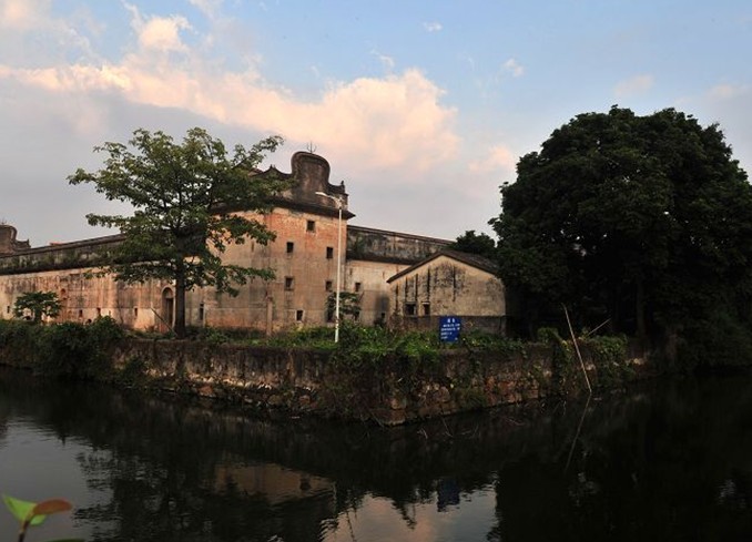 與別的客家圍屋不同,龍田世居三面環水,水面寬約16米,呈半圓形,另一面是高大的圍墻,水面上一座小橋,通往對岸的一個亭子。想來那是當年迎客的接風亭,或者是警惕外敵的了望哨所??梢姰斈甑氖匦l十分森嚴。據介紹,這個半圓形的河岸與外墻成“龜背”狀圖案,為各地圍屋所少見。圍屋四周的花園曲徑通幽,走進花園猶如走進歐洲中世紀的古堡花園,綠樹鮮花散發出來的芬芳令人陶醉,這是典型的嶺南客家式的地主莊園。