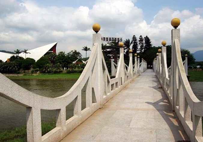 石巖湖溫泉度假村,位于深圳市中心西北40公里的石巖湖畔,占地3.9平方公里,其中水面2.4平方公里,綠化面積為1.2平方公里,建筑面積為4.5平方米,以獨(dú)具特色的天然玉律溫泉而聞名,其古樸典雅的西班牙建筑群綿延如帶,各種抽象派雕塑點(diǎn)綴其間,環(huán)境清靜悅目。
