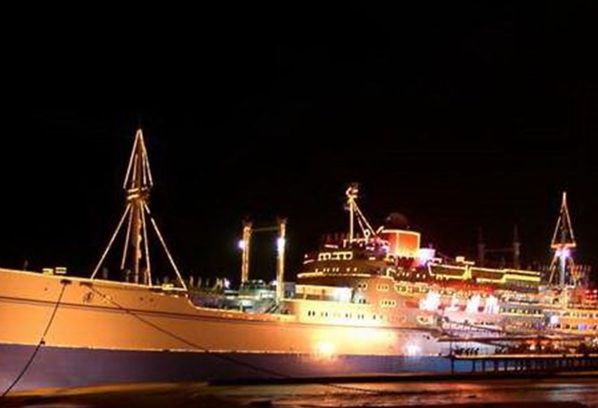 “海上城市”原名“巴西瑪魯”,是日本一艘國際遠航客貨輪,已有四五十年的歷史,船長 156米、寬19.6米,共有七層,排水量達1.7萬噸。1954年下水,1951年載中日友好青年代表團訪問中國,后改為旅游船,停泊在日本旅游勝地鳥羽市港灣,1997年由珠海華瑩集團引進,次年落戶于湛江,與雄偉的南海艦隊軍港隔海相望。