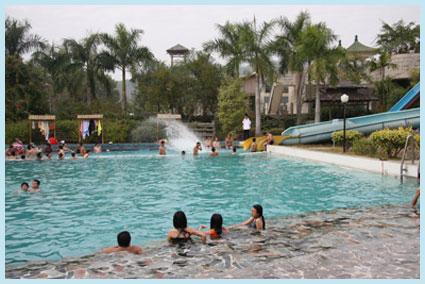 度假村里形態各異的泳池噴泉、亭臺水謝、奇水異花、園林山水,構成了一座全方位、多功能、亦動亦靜、如詩如畫的大型度假村。村內興建有可以在室內泡溫泉的溫泉賓館和度假別墅,溫泉浴分為自然溫泉區和貴賓浸身雅室。自然溫泉區又分為量稚區、情侶區、瀑布區。村中有度假賓館、度假別墅、貴賓浸身臥室、自然溫泉區、籃球、網球、羽毛球、乒乓球、桌球、燒烤等場所。賓館設有中西餐飲、歌廳舞池、大小會議中心、多種規格的豪華客房;自然溫泉區又分為童趣區、情侶區、瀑布區、游泳池、貴妃池、藥物理療池、牛奶美容池等。各種設施應有盡有,足令游客流連忘返。泡在溫軟的泉水里面,使緊張的神經得到松弛,煩躁的情緒得以緩解。含有理療功能的溫泉水,會輕輕按摩著勞損的筋肌。