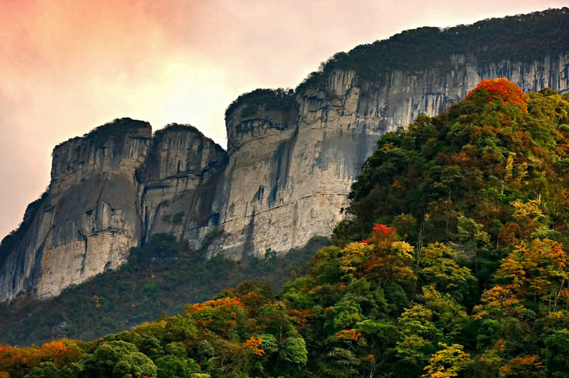 10、石門宮:幾座十余米寬的石柱托起一座巨大山峰,形成數道雄奇險峻的巨型石門,宏偉壯觀,震撼心魄。
