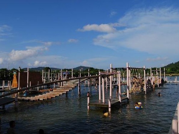 三疊泉是珠海橫琴島上的名泉,泉水自市區最高峰腦背山(458米)由上而下疊成的瀑布——大狹瀑——飛凌瀑——隱靈瀑飛流直下而得名,山澗有許多的清澈的溪泉,山腳下更有可以暢飲的山泉泳場,它一鵝卵石砌岸鋪底、泉水自進自去、活水泳場清爽暢快。并有一個1.5萬平方米的大型沙灘泉水泳場,泉水有兩種水溫,上暖下涼,這就是最獨特之處。海島少有清洌的甘泉,而三疊泉竟能成瀑、成潭、成泳場、既可觀、有可飲、可游樂、是島上一絕。