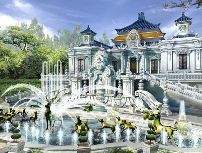福海,又稱東湖水面面積約有十余畝,東西、南北各寬五六百米,為全園中心,也是全園大的湖,故知名人稱為“海”雍正帝為追求神仙隱居之幻境,將一座座仙山瓊閣散落于福海周圍,按“徐福海中求”之寓意,把東湖命名為福海。它是當年皇帝及后妃們游湖、觀龍舟、觀煙火的好去處。是圓明園中水上活動的中心。圓明新園的福海再現了當年的景象,加上帝后們的龍舟巡游表演,使游人在游覽過程中獲得豐富的藝術享受。