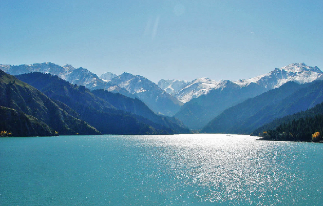 中國新疆維吾爾自治區著名湖泊。在烏魯木齊東北100公里,博格達峰北坡山腰。湖面海拔1910米,南北長3.5公里,東西寬0.8~1.5公里,最深處103米。湖濱云杉環繞,雪峰輝映,非常壯觀,為著名避暑和旅游地。天池成因有古冰蝕-終磧堰塞湖和山崩、滑坡堰塞湖兩說。由天池流出的三工河為山麓阜康縣農牧業主要灌溉水源。天山天池風景區以高山湖泊為中心,雪峰倒映,云杉環擁,碧水似鏡,風光如畫。