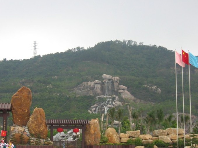 由我國園林名石——廣東英石、江蘇太湖石以1:1000倍比例按廣東嶺南派著名畫家林風俗教授的水墨山水名畫——“天下第一盆景”為藍本放樣砌成。