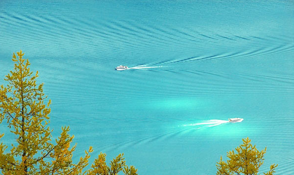 關于變色湖的原因是季節變化所引起上游河水所含礦物成分多少的緣故;且與周圍群山植物隨季節變化的不同色彩倒映在湖中,以及陽光角度變化和不同季節的光和作用對湖水的影響也有一定關系。其主要是喀納斯湖水來源于友誼峰南坡的喀納斯冰川,當冰川作用于周圍由淺色花崗巖組成的山地時,冰川掘蝕攜帶的花崗巖巖塊經擠壓研磨成白色細粉末混合于冰層內,炎熱的夏季夾帶有白色細粉末的冰川融化,大量的呈乳白色的冰川融水和雨水進入喀納斯河,流進阿克庫勒的湖(白湖),阿克庫勒湖的乳白色水再流向下游匯入喀納斯湖,這就是喀納斯湖在7—8月變為白色的原因。每年12月份封凍后,喀納斯湖又像一面白色的水晶鏡,當地牧民用爬犁在湖面上運送物品或進行滑雪滑冰。另外,在不同的天氣、從不同的角度去看喀納斯,特殊的水質與天色和山色相互折射而產生不同的色彩。由于喀納斯湖被群山環抱,在高原藍天白云的大背景下,湖水受陽光和云團的映射,又將周圍的山色反射在湖中,湖水會隨著天空云朵的變化和陽光下山色的明暗交替,變化萬千,斑斕流彩。