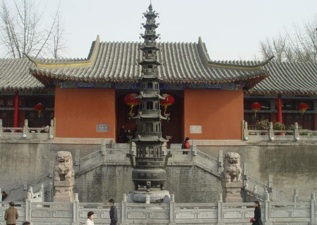 梁武帝時又在臺上建有鐵佛寺。唐大歷年間又重修擴建,定名明教院,至明代改為明教寺。后毀于戰(zhàn)火。明教寺,聳立臺上,雄偉壯觀,乃清光緒十一年太平天國遺老袁宏謨云游募化,按原樣重建而得。明教寺現(xiàn)為全國重點寺廟,由佛殿、藏經(jīng)閣、西廂院三部分組成。殿分正殿和后殿,有佛像三十多尊。大雄寶殿飛檐翹角,風(fēng)鈴叮鐺,殿脊高聳一巨大錫葫蘆,銀光閃耀,直刺云天,顯示了我國佛教寺院威嚴(yán)莊重得建筑特色。寺內(nèi)鐘鼓齊鳴,梵音繚繞,充滿了神奇得宗教色彩。