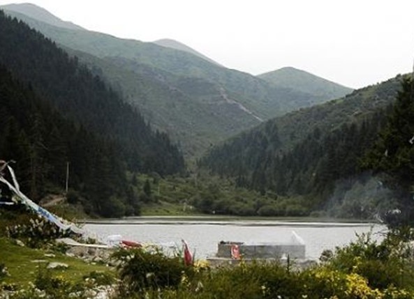 位于王夏公路約10公里處,距縣城17公里,是一潭構造成因的斷崖地形之湖盆。湖面海拔三千米左右,呈狹長形,湖濱周圍怪石嶙峋,虬松四出。湖南北長約350米,東西寬約百米,面積約有五十余畝。湖濱地形開闊,外圍前塬是平壩草甸,三面環山,山上森林密布,林中百鳥群集,湖中魚類繁生,湖畔野草叢生,百花盛開,湖光山色,令人陶醉。人們形容達宗湖象一顆鑲嵌在密林幽谷里的明珠,在高山峽谷之巔放射著耀眼的光芒!