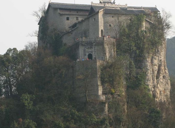 天臺(tái)山伍龍寺是屯堡古寺廟建筑的典范,它雄峙于一峰獨(dú)秀的天臺(tái)山上,四周城墻懷抱,是軍事功能和宗教功能合一的建筑。伍龍麉是屯堡古寺廟建筑中保存最完整的明清建筑群。它始建于明萬歷十八年(公元1590年),被建筑專家贊譽(yù)為“石頭建筑的典范”、“深山明珠”。它的結(jié)構(gòu)分內(nèi)外兩部分,外部均用石塊砌壘,與山巖由于風(fēng)化造成的水平線十分接近,渾然一體,表現(xiàn)出粗獷的性格,墻壁上開極少的貓窗。
