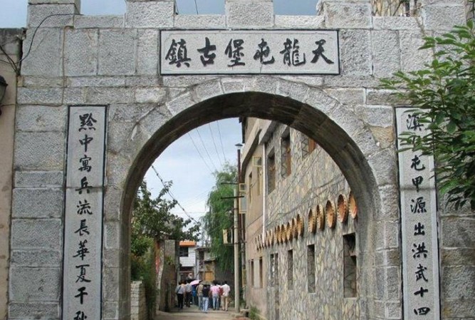 天龍屯堡古鎮地處西進云南的咽喉之地,在元代這里就是有名的順元古驛道,天龍屯堡古鎮最早是順元古驛道上的一個驛站,版權所有山東聊城聊之旅國際旅行社有限公司,轉載必究!名叫飯籠驛。由于軍事地理位置重要,從明代開始就在這里及周邊大量屯兵,時至今日依然是駐軍重地。清朝康熙年間,云貴總督范承勛奉旨實行“改土歸流”后,屯堡人由軍戶轉變為普通百姓。天龍屯堡古鎮更名為“飯籠鋪”,由于地理位置的重要性,這里依然是清廷的驛站和屯兵重地。本世紀初,天龍的幾位有名鄉儒感覺飯籠鋪的“飯籠”二字不雅,經提議,取天臺山的“天”,龍眼山的“龍”二字為村寨之名,這就是天龍屯堡鎮“天龍”二字的由來。歷代的屯兵都在這塊大地上留下了歷史的遺跡:明朝征南軍隊在天臺山背后的兵器加工場所(本地人呼之為“打鐵坑”);煙堆山的明代烽火臺殘壘;圍繞天臺山的古城墻;清“威同之亂時”修建有垛口、炮臺、瞭望哨的龍眼山屯,至今殘垣尚存;在天龍屯堡古鎮中,則是巷道縱橫交錯,遍布于巷道中的深邃搶眼,石拱門一夫當關,萬夫莫開的軍事功能,這一切無不顯示出戰爭的遺跡,屯堡人武備的思想。明代飯籠驛最初的建設者是如今天龍“張、陳、沈、鄭”四大姓的入黔始祖們,特別是身為“通政大夫”的陳典(注:通政大夫是主管郵政的官吏),在天龍設驛站,建塘房(塘房是驛站供來往人員住宿的地方),其他三大姓入黔始祖則建“屯堡”屯扎軍隊。