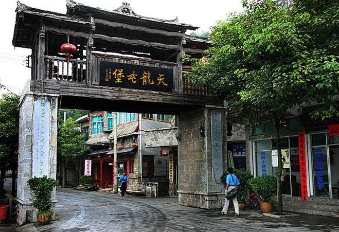 天龍屯堡古鎮位于貴州省西部平壩縣,喀斯特地貌大山深處,有天臺山、龍眼山兩山脈,距貴陽市72公里。這里地處西進云南的咽喉之地,在元代就是歷史上有名的順元古驛道上的重要驛站,名“飯籠驛”。明初時,朱元璋調北鎮南,在這里大量屯兵,兵來自江浙漢族,本世紀初被當地儒士改名為“天龍屯堡”。
