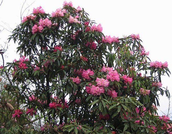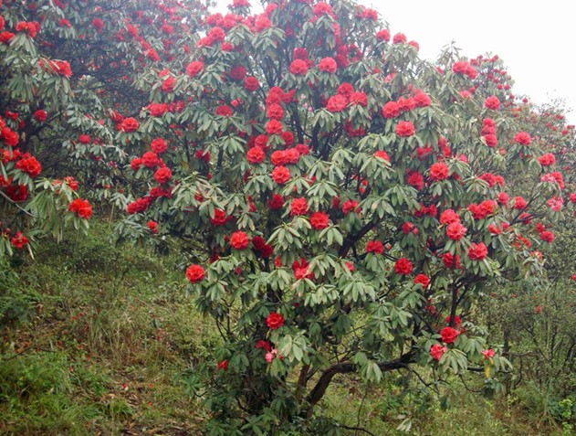 馬纓杜鵑樹身高大,花冠濃密,多的有二、三百朵。花簇如團團烈火在枝頭燃燒,映紅了天,映紅了地,映紅了游人的臉,映紅了四周的山。馬櫻杜鵑又叫”馬櫻花“、”索瑪花“,傳說是索瑪姑娘的鮮血變成的圣花。