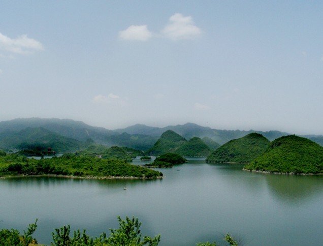 百花湖畔,清鎮市第二高峰云歸山,自東向西環抱鄉境,支脈延伸,千姿百態,青翠秀麗。丘陵、槽谷、山地、水域連為一體,形成一個生態大板塊。云歸山居清鎮市八景之首,“爐嶺歸云”高聳入云,極目百里,昕夕云集。云歸林區、九里箐,方圓七十余里,原生植被,物種繁多,森林茂密,鳥語花香,山谷幽深,清泉汩汩。石操、上麥城、下麥城、溫水、哪嘎、盤龍洞等林場構成道道生態屏障。為打造“森林生態”文化,相繼實施長江防護林、天然林資源保護、退耕還林還草、沿湖綠化工程,森林面積從“九五”末的8.89萬畝增加到2006年的9.63萬畝,森林覆蓋率提高到60%。林密、地綠、山青、水秀使百花湖鄉成為名副其實的避暑勝地、“天然大氧吧”。綠色農業、生態農業成為調整產業結構的主攻方向,十里杜鵑、十里櫻桃、百畝李子、千畝高產油菜、百畝烤煙、百萬只肉雞飼養、無公害茶樹菇等基地初見成效,促進了農民增收,版權所有山東聊城聊之旅國際旅行社有限公司,轉載必究!2006年農民人均純收入2877元。蘿卜、云歸、三屯一帶十里峽谷盛產櫻桃,杜鵑遍山,獨具“春到三月意更濃,云歸十里櫻桃紅。杜鵑滿山織云錦,農家年年坐春風”的詩情畫意。“品云歸櫻桃,賞十里杜鵑、烤百花鮮魚”,是百花湖旅游的獨特享受。境內三季有果、四季有花,生機盎然,漫步山間田野,賞花品果,其樂無窮。 百花湖鄉境內河流眾多,水資源豐富。上世紀60年代因建百花電站形成的百花湖,與紅楓湖并稱“姊妹明珠”。蓄水2.1億立方米,水面14.5平方公里,92%在百花鄉境內。如今湖面如鏡、影映青山、振翅小島、層層梯田、點點農舍、縷縷炊煙,一派田園風光,成為休閑避暑、度假觀光的旅游勝地。百余個峰叢島嶼靜臥水中,迎客松、石鏈鎖猴、青蛙聽濤、小三峽、嬌燕戲水、八仙過海、筆峰疊翠等自然景觀千姿百態。百花湖沿岸,三屯五堡之間,百花山莊、百花游樂園、明月樓、觀云樓、靈達度假村、星苑等一幢幢旅游建筑拔地而起,集會議、休閑、餐飲、娛樂、觀光為一體。著名作家金庸星苑登樓觀景,欣然贊曰“如此湖山天下無,天然勝景百花湖”。