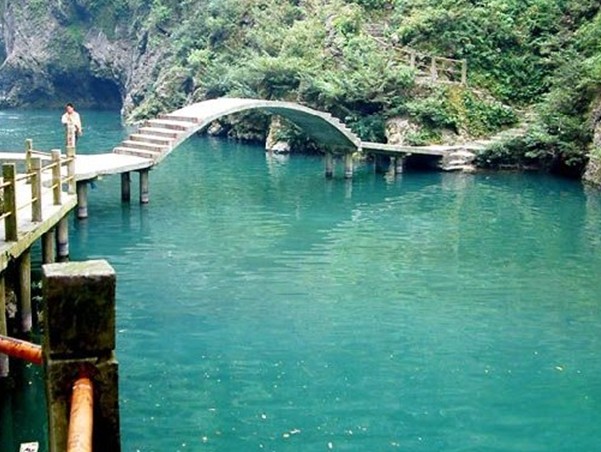 其中心景點為三江匯合處,三水斗奇,景致頗佳。溯三江而上,南連魚梁江古渡口響琴峽,北望沙河之濱的道教圣地福泉山,西走諸梁江畔仙人洞。在三江匯合處,絕壁高峻,雄渾磅礴,江心兀立巨石一塊,高約數十米,稱“將軍過河”,又有張三豐趕羊遺下的“金鞭石”之說。距沙河水約50米處,有一道瀑布,其下橫生一石,稱“金龜戲瀑”。 灑金谷的景物都有一個個美麗的傳說,如“牛王投井”、“黑熊抱美女”、“豆腐橋”、“草鞋井”等等。古城垣、古橋、古驛道、古摩崖石刻,讓游客置身一個遠離現代喧囂都市的凈土。“豆腐橋”更以其精湛的造橋工藝載入了中國橋梁史。版權所有山東聊城聊之旅國際旅行社有限公司,轉載必究!在橋頭還保存著歷代騷人墨客留下的詠橋詩篇。