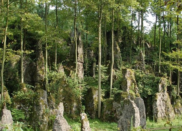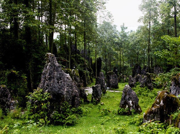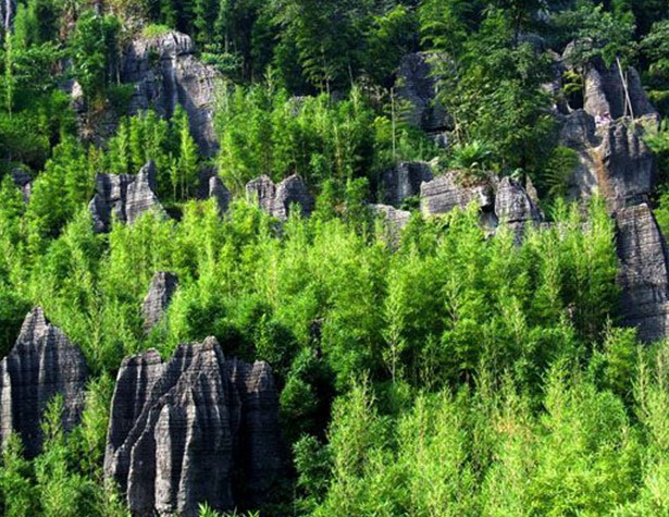 綠色石林地處貴州省貴陽市修文縣,占地1000多畝。景區內眾多奇峰怪石拔地而起,似劍如戟,破土直刺蒼穹。石峰最高達30余米,又有地峽石罅幽深曲折。因綠樹古藤、蟠枝虬根常年攀附石峰,使石林平添了幾許柔情,獲得了“綠色”石林的美譽。又因它造型迥異的石形而贏得了“擬態動物園”的美名。