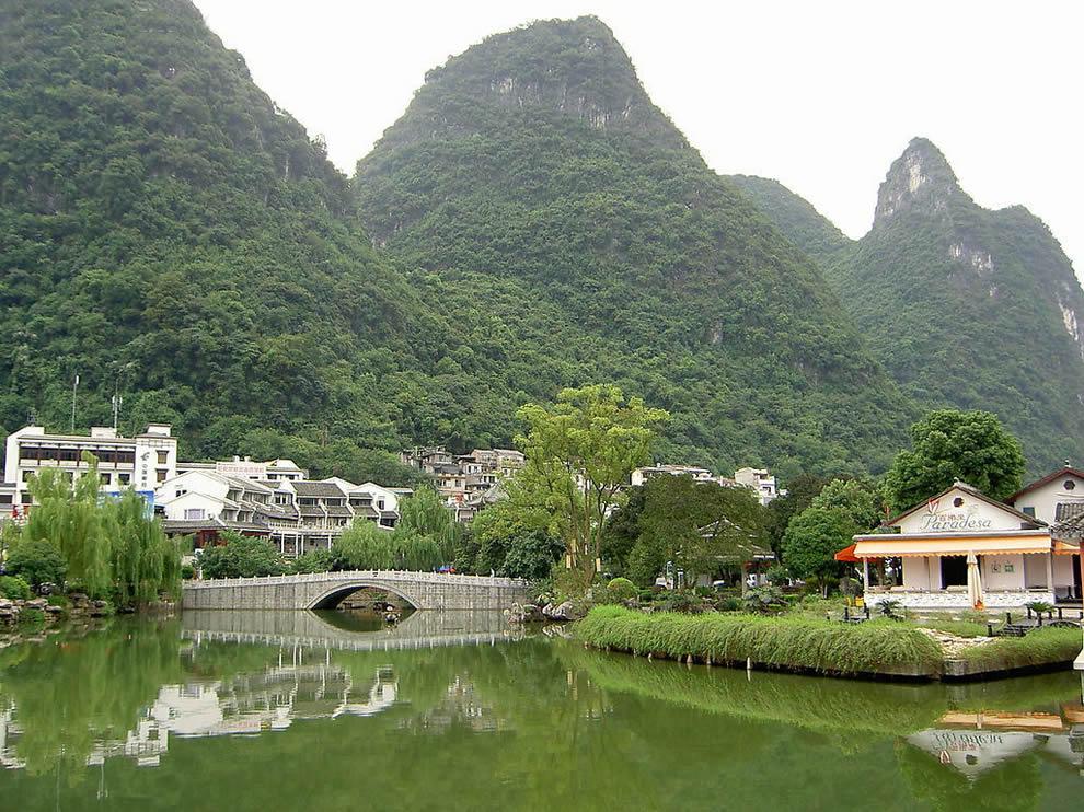 聚龍?zhí)对趶V西陽朔城南桂荔公路六公里處,介于著名風景點“穿巖古榕”、“明月奇峰”之間。由黑巖、水巖組成,兼水陸之勝。
