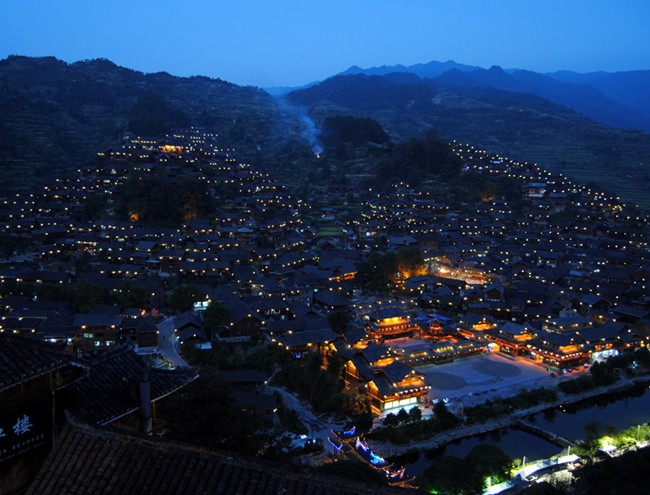 西江千戶苗寨,位于貴州省黔東南苗族侗族自治州雷山縣東北部的雷公山麓,距離縣城36km,距離黔東南州州府凱里35km,距離省會貴陽市約260km。由十余個依山而建的自然村寨相連成片,是目前中國乃至全世界最大的苗族聚居村寨。西江有遠近聞明的銀匠村,苗族銀飾全為手工制作,其工藝具有極高水平。西江是一個保存苗族“原始生態”文化完整的地方,是領略和認識中國苗族漫長歷史與發展的首選之地。西江牯藏節、苗年,聞名四海,西江千戶苗寨,一座露天博物館,展覽著一部苗族發展的史詩,成為觀賞和研究苗族傳統文化的大看臺。