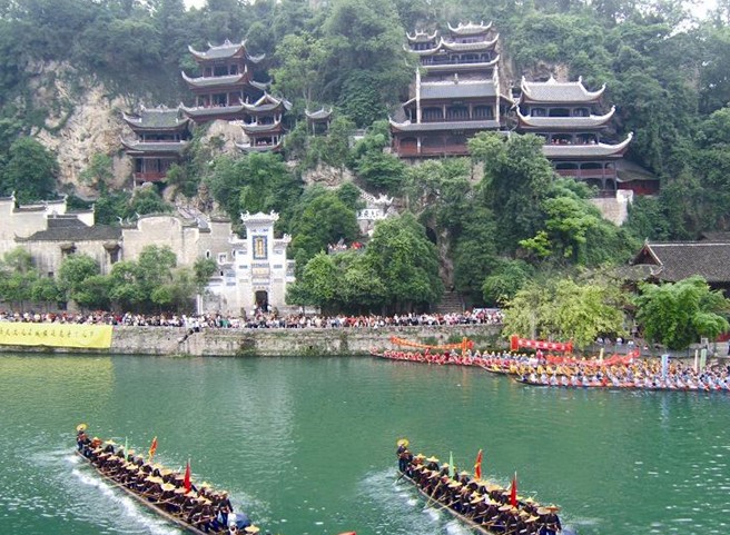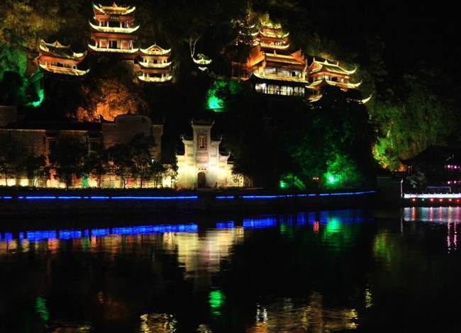 青龍洞古建筑群坐落在中國歷史文化名城——鎮遠城東的中和山上。這里山勢挺拔,峭壁懸崖。巨巖、洞穴和為一體。道、儒、佛三種宗教的寺廟群生就山腰。它背靠青山,面臨綠水,貼壁臨空,五步一樓,十步一閣,翹翼飛檐、雕梁畫棟。這些古建筑依山因地,分別采用了“吊”、“借”、“附”、“嵌”、“筑”等多種工藝,硬是在一段懸崖上筑出中元洞、紫陽洞、青龍洞、萬壽宮等一片閣樓洞天。它氣勢雄偉、構思大膽、布局精巧。于1988年被列為全國重點文物保護單位。青龍洞建于明代中葉,至今已有近500年的歷史,曾幾度毀于兵、火,幾度修復,古建筑群經歷代修建始成現代規模,位于城東中河山,占地21000平方米,有青龍洞、紫禪書院、中禪院、萬壽宮、祝圣橋和香爐巖6部分共36座單體建筑組成,集儒、道、佛、會館、橋梁及繹道建筑文化于一身。版權所有山東聊城聊之旅國際旅行社有限公司,轉載必究!整群建筑靠山臨江,依崖傍洞貼壁凌空、勾心斗角,錯落有致。那飛巖翹角、貼壁凌空、紅墻青瓦的殿閣樓臺,氣勢宏偉。造型獨特的建筑物與懸崖、古木、藤蘿、巖畔、溶洞天然合成,融為一體,真是巧奪天工。既有臨江遠眺的吊腳樓,也有恬靜幽邃的寺院禪臺,有朗朗書聲的學子院,更有鑼鼓喧天的戲臺,集天下山水樓閣薈萃為一方。整個建筑群重重疊疊參差不齊,縱橫有致,沿庭院小徑漫步,登斯樓而極目,如臨海市蜃樓,蓬萊仙島。為江南漢地建筑與西南少數民族山地建筑文化相結合的絕妙典范。有“西南懸空寺”之稱,是貴州省規模最大的古建筑群。1988年經國務院批準被列為國家級重點文物保護單位。史載,距今600多年的明洪武年間,此地便已形成與現存建筑群相當的規模,“明郡守黃希英建,工部郎中趙之緒購藏經,構層樓以貯之”。清嘉靖年間這里不僅增加了大量寺廟,而且有了宮室和書院建筑,后多有改擴建。雍乾時又有了萬壽宮等商業性會館建筑及戲樓。光緒四年,又增建了祝圣橋上的狀元樓(亦稱魁星樓)。1956—1963年間,省州政府撥出專款,組織專人對青龍洞建筑群兩度較大維修,后又對中元洞一組修復。1983年起,省政府再次撥巨款對青龍洞、紫陽洞、萬壽宮、香爐巖等各組古建筑全面搶救和修復,青龍洞古建筑群得以恢復原貌。此建筑名勝有如群星 燦爛,通常以青龍洞概言之,成了歷代游人流連忘返之地,文人騷客詠嘆之物。清人陳夔龍詩云: