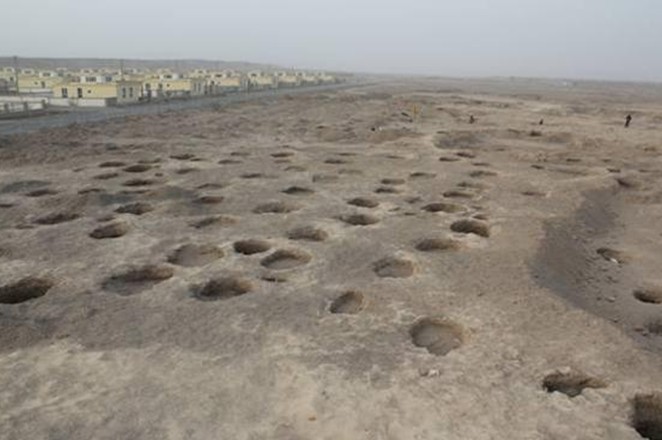 哈密五堡墓地位于新疆哈密市五堡鄉(xiāng)政府西北2公里。南距五堡水庫約1公里。距今約3000余年,青銅時(shí)代文化遺存。為原始社會(huì)晚期階段的氏族公社墓地。海拔525米。地理坐標(biāo):東經(jīng)92°49′14″,北緯43°1′52″,1990年被列為新疆維吾爾自治區(qū)文物保護(hù)單位。1978、1986和1991年,新疆文物考古研究所會(huì)同哈密地區(qū)文物管理所進(jìn)行的三次考古發(fā)掘,共清理墓葬113座。哈密五堡墓地墓區(qū)內(nèi)墓葬十分密集,鱗次櫛比,排列有序。地表近平,不見封堆。哈密五堡墓地墓葬均為長方形豎穴土壙墓,一般長1.5米,寬1米左右,深1.2~2米。近哈密五堡墓地墓室底部有生土或土坯二層臺(tái),高約0.5米,寬約0.2米。二層臺(tái)上鋪弧形蓋木,蓋木大多為胡楊,版權(quán)所有山東聊城聊之旅國際旅行社有限公司,轉(zhuǎn)載必究!蓋木彼此切合不密,只稍事砍削,相對平整。蓋木下即為哈密五堡墓地墓室,一般長1.1米,寬0.8米左右。哈密五堡墓地墓室內(nèi)大都葬一人,均側(cè)身曲肢,雙腿極度曲卷。