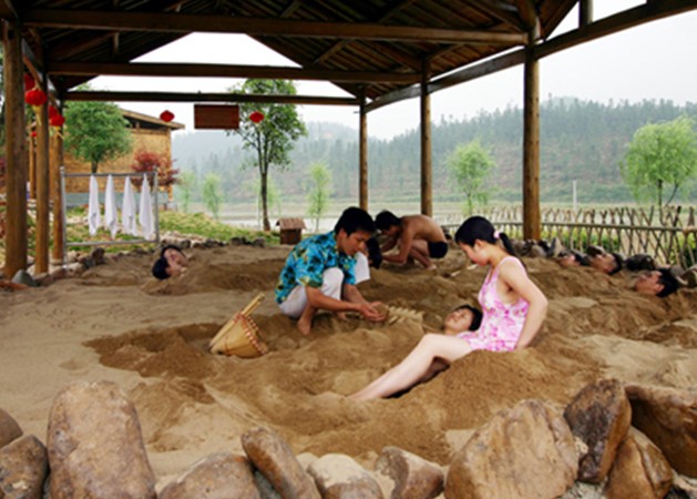 沙療,即沙埋療法,是西北內陸沙漠地區人民利用當地的獨特氣候條件、地理條件治療疾病的一種方法。就是將病體部位埋入沙中,利用陽光、干熱、壓力、磁力〔沙療所沙比外地沙含磁礦高9倍〕的綜合作用治療疾病的一種民間治療方法。用以治療風濕性關節炎、慢性腰腿痛等,據說有效率達90%以上。吐魯番市西北16公里處,有兩座黑灰色大沙丘,是理想的沙療地。當地地溫高。黑灰色沙丘熱量高,沙中富含礦物質,埋沙時沙粒對身體有摩擦作用,所以專家認為這是一種集熱療、磁療、按摩于一體的綜合理療法。沙療場地系風成固定沙丘,長約200米,寬60-80米,比高8-10米。據多年氣象資料,每年6月5日至8月20日,吐魯番高溫、干熱,白天氣溫高達38-42度時,表層沙溫高達75-82度。每天北京時間5點后,沙堆10米深處的沙溫仍在60-80度之間。
