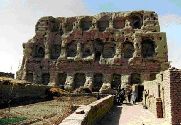 臺藏塔 位于吐魯番市以東約40公里,南距高昌故城約1公里。為高昌王國時期的佛教建筑。塔高20米,塔東面與北面均有佛教洞龕。西面塔壁中有洞,貫穿墻壁,作用不明,南壁已毀。由于距高昌故城較近,又是高昌王國佛教建筑,充分反映了高昌時期佛教的興盛。臺藏塔的始建年代為公元6~7世紀(麹氏高昌時期),是當時著名的佛教遺址。14世紀末,察合臺汗國統治者強迫高昌地區的居民信奉伊斯蘭教之后,臺藏塔逐漸毀破。