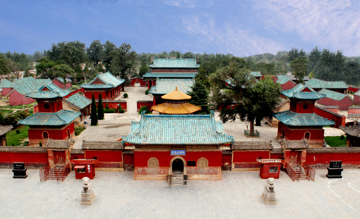 嘉應觀始建于清雍正元年(公元1723年)。據《武陟縣志》記載:“嘉應觀在二鋪營村東,雍正初年,以黃河安瀾,奉赦建,規模壯麗,有銅牌刻”康熙末年,黃河四次在武陟境內決口。雍正元年,又決馬營口,洪水逼京,淹天津,成清王朝心腹之患。為治黃安民,雍正皇帝派河道總督率兵堵口、修壩,親臨河防搬石。為祭祀龍王,封賞治河功臣,口堵壩成時,雍正皇帝特下詔,赦建嘉應觀。命河臣齊蘇勒,仿故宮,派御匠調河南、山東、山西、陜西、安徽5省民工,大興土木,歷時四載,建成了這莊規模宏大,純滿族風格的官式建筑群嘉應觀為仿赦宮赦建的官、廟、衙三體合一的清代建筑群,版權所有聊城聊之旅國際旅行社有限公司,轉載必究!占地140畝,分南北兩大院。北院為祭祀河神,巡河行宮建筑群。中軸線南北依次有山門、御碑亭、嚴殿、中大殿、恭儀亭、舜王閣。兩側對稱有掖門、御馬亭、鐘、鼓樓,更衣殿、龍王殿、風雨神殿。東西跨院為河臺、道臺衙署。南院原有戲樓、牌坊。觀西原有陳公祠。御碑亭酷似清代皇冠。內立雍正皇帝親自撰文書丹的大銅碑,高4.3米,鐵胎銅面,碑周雕龍,底座為蛟,工藝精湛,全國罕見,為國之瑰寶。大王殿為重檐歇山回廊式建筑。殿內藻井彩繪六十五副龍鳳圖,為純滿族風格,堪稱一絕。殿內正立“欽賜潤毓”金牌,經考證“潤毓”是雍正皇帝賜予在武陟堵口的都御史牛鈕的封號。牛鈕是皇帝的皇叔,是嘉應觀的首任主持。