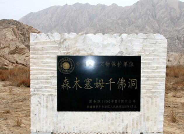 森木塞姆千佛洞屬全國重點文物保護單位,位于中國西北部新疆維吾爾自治區的庫車縣,是一處晉代至宋代(公元4~10世紀)的佛教石窟群遺址。森木塞姆千佛洞主要分布于卻勒塔格山口直徑約800米范圍內的山崖上。石窟大部分已經遭到破壞,目前保存較為完整的有57座。洞窟分布在馬蹄形的山谷里,按地理位置可分為東、南、西、北、中五個區,現有編號洞窟57個。