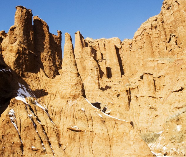 溫宿神秘大峽谷是2600萬年前內陸湖泊沉積的地層。由距今一億多年前的中生代的白堊紀,經過億萬年的洪水、雨水沖刷和勁風吹蝕共同作用而形成的。全景為巖鹽喀斯特地貌和峽谷雅丹地貌為代表的地質遺跡和地質景觀。目前大峽谷開發的路段溝長約10幾公里,南北向,寬處約200至300百米,狹窄處僅可一人通過。版權所有山東聊城聊之旅國際旅行社有限公司,轉載必究!走進大峽谷,峽谷兩側因風吹日蝕,雨水沖刷,形成了許多神奇肅穆令人嘆為觀止的傳神奇景,如:英雄谷、幽情谷、雙塔谷、紫瀾山、胡楊雙雄、萬僧朝圣、千年古堡、千山雄風、太空來客、驛路城池、雙塔爭鋒、情俑、千古壁畫、千屋萬塔、一線云天、星河飛瀑、三心石、二意柱、巨輪飛渡、赤柱坡、雄鞭口、望心門、赤砂墩等氣勢壯觀的100多處難于用語言文字表達清晰的山體造型。英雄谷,男人谷,情人谷中的—生命之本和生命之源是大峽谷的鎮谷之寶。