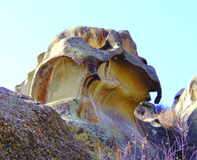 怪石溝是由花崗巖組成的穹窿構造的山地,經過億萬年的風霜雨雪的侵蝕。這里巖石裸露、怪石嶙峋,石群奇特美妙,呈現出千姿百態的自然景觀,如天狗望月、石猴母子、大象戲水、迎賓將軍石、黑熊探海、喚云峰、沙魚石、孔雀石、烏龜石、野豬石、鷹嘴石、羚羊石、犀牛石,還有曲徑通幽、天橋橫貫的異境。真是鬼斧神工,自然天成,令人驚嘆不已。怪石峪的古代巖畫又是一道景觀,主要是狩獵圖和動物巖刻畫。怪石峪還有許多突厥古墓,距今有1300多年歷史,是游人考古探秘的理想去處。