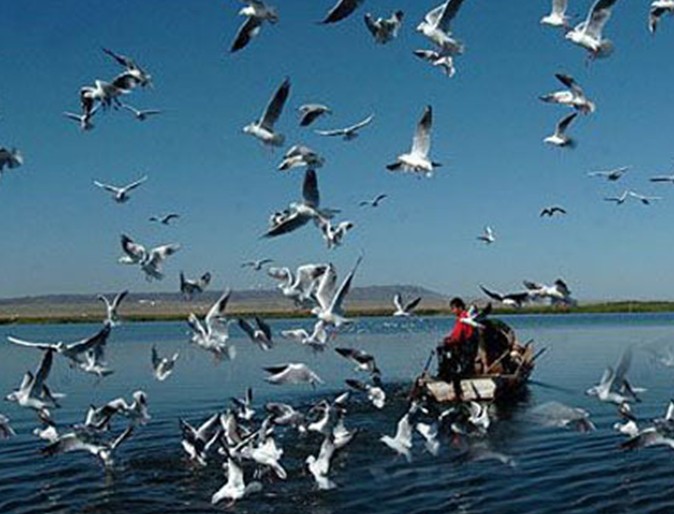 位于中國新疆維吾爾自治區準噶爾盆地北部的斷陷湖。維語稱噶勒扎爾巴什湖,又稱布倫托海、大海子,是烏倫古河的歸宿地。湖面高程468米。湖形似三角形 ,南北寬約30千米,東西長35千米,湖水面積827平方千米 。烏倫古河先流入吉力湖,經西北流出 ,再經8千米的庫依戈河匯入烏倫古湖 。湖水礦化度由河道入口處向西逐漸增高到2.7克/升,有咸味。1969年鑿通了額爾齊斯河與烏倫古湖之間的分水嶺,修建了引額濟湖渠道工程,每年可引1.85億立方米水量注入烏倫古湖。烏倫古湖以產五道黑、紅魚、鯉魚、貝加爾雅羅魚、河鱸、斜齒鳊、東方真鳊等著稱。版權所有山東聊城聊之旅國際旅行社有限公司,轉載必究!湖濱地帶是水草豐茂的牧場。