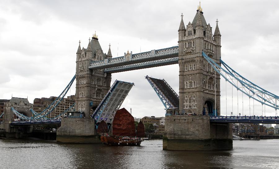 倫敦塔橋是一座吊橋,最初為一木橋,后改為石橋,現(xiàn)在是座擁有6條車道的水泥結(jié)構(gòu)橋。河中的兩座橋基高7.6米,相距76米,橋基上建有兩座高聳的方形主塔,為花崗巖和鋼鐵結(jié)構(gòu)的方形五層塔,高43.455米,兩座主塔上建有白色大理石屋頂和五個小尖塔,遠看仿佛兩頂王冠。兩塔之間的跨度為60多米,版權所有聊城聊之旅國際旅行社有限公司,轉(zhuǎn)載必究!塔基和兩岸用鋼纜吊橋相連。橋身分為上、下兩層,上層(橋面高于高潮水位約42米)為寬闊的懸空人行道,兩側(cè)裝有玻璃窗,行人從橋上通過,可以飽覽泰晤士河兩岸的美麗風光;下層可供車輛通行。當泰晤士河上有萬噸船只通過時,主塔內(nèi)機器啟動,橋身慢慢分開,向上折起,船只過后,橋身慢慢落下,恢復車輛通行。兩塊活動橋面,各自重達1000噸。從遠處觀望塔橋,雙塔高聳,極為壯麗。橋塔內(nèi)設樓梯上下,內(nèi)設博物館、展覽廳、商店、酒吧等。登塔遠眺,可盡情欣賞泰晤士河上下游十里風光。假若遇上薄霧鎖橋,景觀更為一絕,霧鎖塔橋是倫敦勝景之一。