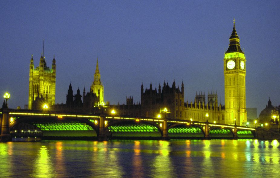 英國倫敦著名古鐘,即威斯敏斯特宮報(bào)時(shí)鐘(坐標(biāo):51°30′02.2″N, 00°07′28.6″W)英國國會會議廳附屬的鐘樓,建于1859年。安裝在西敏寺橋北議會大廈東側(cè)高95米的鐘樓上,鐘樓四面的圓形鐘盤,直徑為6.7米,是倫敦的傳統(tǒng)地標(biāo)。2012年6月,英國宣布將把倫敦著名地標(biāo)“大本鐘”的鐘樓改名為“伊麗莎白塔”。