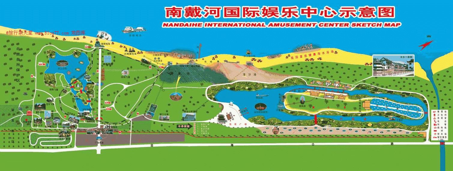 景區(qū)地圖南戴河國際娛樂中心旅游資源十分豐富,自然資源得天獨厚,一面是蔚藍的大海,三面是茂密的森林。這里灘寬水清,沙軟潮平,空氣清新,林木蔥郁。海水浴場是“國家首批健康海水浴場”,空氣質(zhì)量達到了國家《環(huán)境質(zhì)量標準》GB3095-1996表中一級質(zhì)量標準,環(huán)境噪聲質(zhì)量達到國家O類標準。園中有各種鳥類近百種,現(xiàn)已被河北省列為鳥類自然保護區(qū),2004年通過ISO-9001質(zhì)量和ISO-14001環(huán)境管理體系認證。
