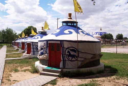四、賽馬、摔跤、射箭場:從餐飲住宿部向東南行走500米,到蒙古族娛樂活動的中心,賽馬場,每年的那達(dá)慕大會就在這里召開。在高天的主席臺兩側(cè),排列著階梯形的觀禮臺。周長兩公里的封閉式賽馬道開闊平坦。騎手們穿著五彩繽紛的民族服裝,在賽道上飛奔,游人們情不自禁的跨上駿馬加入到賽馬的行列,一表騎馬風(fēng)采。