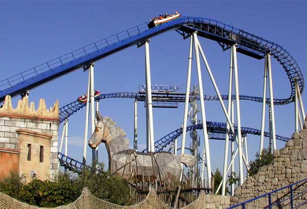 名為“京達卡”(Kingda Ka)的最新過山車是世界上最快的過山車,它的高度達到了139米。開始時水壓彈射器將游客乘坐的車速提高至每小時206公里,穿過270度的環(huán)形通道,讓人有強烈的失重感。這座過山車有一個雙軌道站臺,可同時支持4駕過山車在2條軌道上收放游客,總功率可達到7400馬力,每小時可以接待多達1400名游客。“京達卡”是目前為止,世界上最高,同時也是最快的過山車。