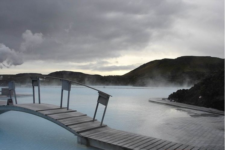 看到藍湖的指標時,簡直不敢相信它就位于一片荒蕪的黑色山融巖之間,史瓦特森格尼地熱發電廠三根巨大煙囪是著名的地標。